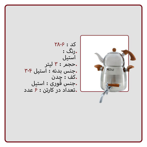 کتری وقوری نزاز 4لیتر با قوری استیل دسته چوب کد:3016۴٬۱۴۰٬۰۰۰ تومان